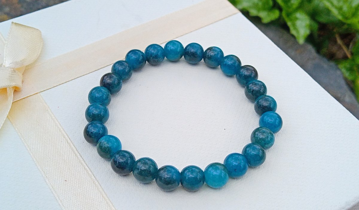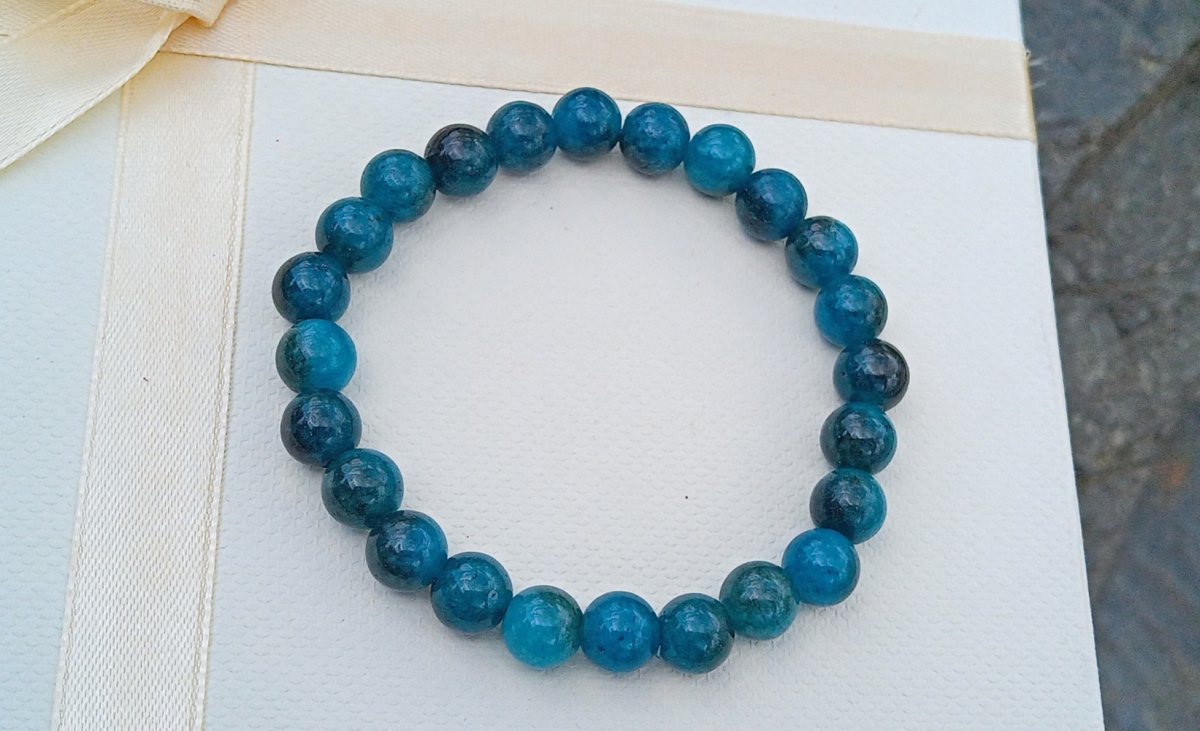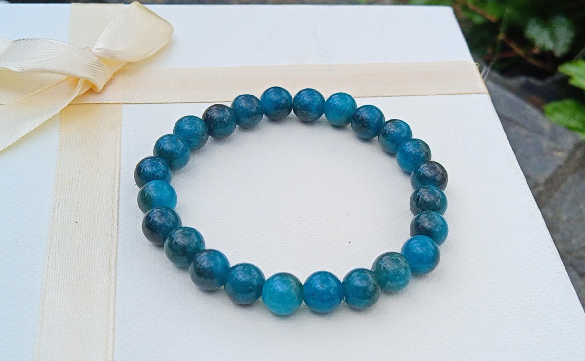 Krásně zbarvený apatit o průměru 8 mm v pružném náramku vhodném pro muže i ženy.
