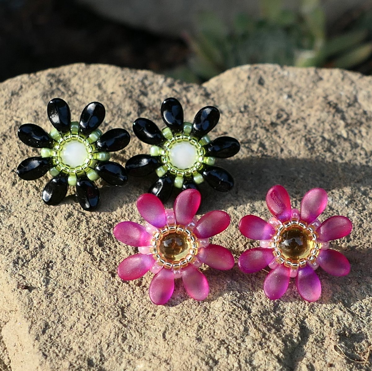 Šité náušničky průměru 2,1 cm, puzety nerez. Včetně silikonových zarážek. Puzety všité do náušnice pevně.