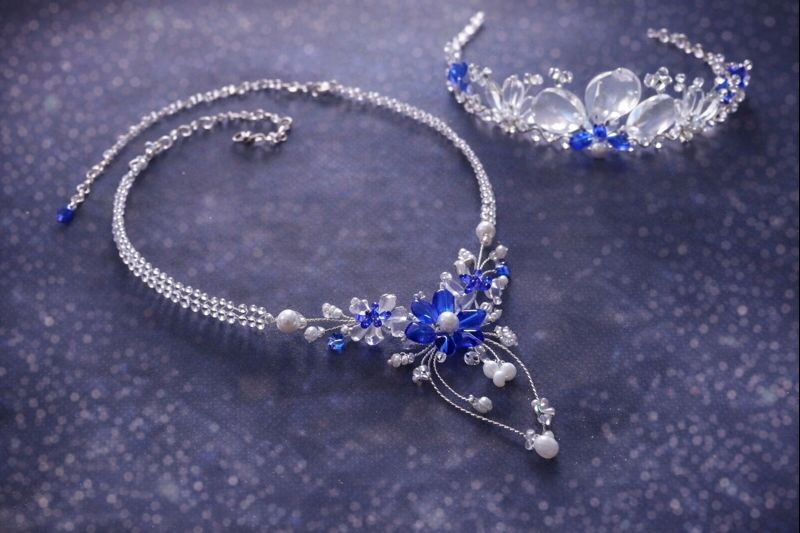 Každý kus je originál, vyráběný s důrazem na detail, lehkost a pohodlí při nošení. Díky harmonickému spojení bílé, stříbrné a královsky modré barvy je ideální volbou pro nevěsty, slavnostní příležitosti i společenské šaty v modrých či neutrálních tónech.