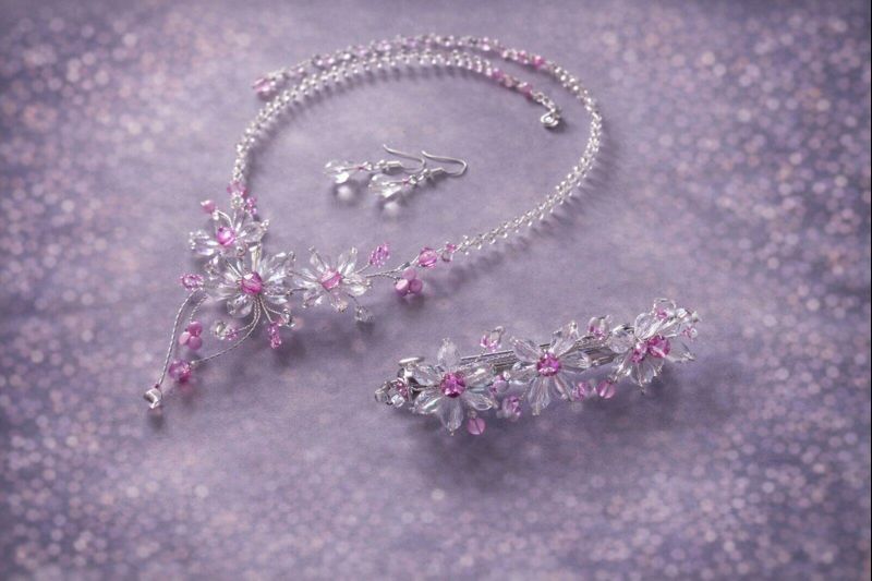 šperkový set, plesový šperkový set, náhrdelník náušnice náramek, elegantní šperky, večerní šperky, šperky na ples, ručně vyráběné šperky, společenské šperky, autorské ěperky, autorský náhrdelník, svatební náhrdelník, květinový náhrdelník, ručně vyráběné šperky, náhrdelník s květy, svatební šperk, modrý náhrdelník, šperk pro nevěstu, originální šperk