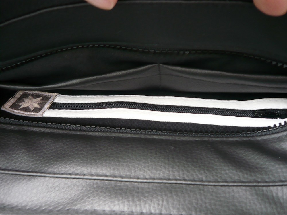 Vnitřek obsahuje dvě prostorné kapsy (jedna kapsa se zipem a druhá naproti dvojkapsa)