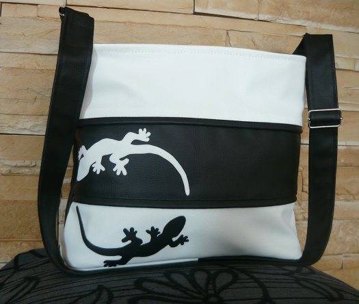 Originální, sportovně-elegantní kabelka s aplikací černé a bílé ještěrky.