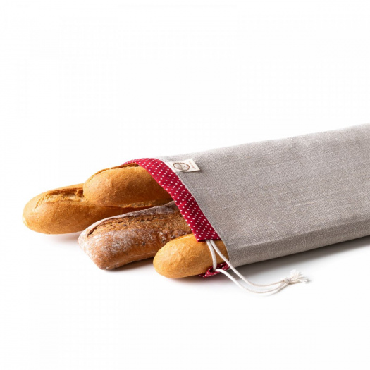 Bagetovka je podobně jako Rohlíkovka jednovrstvý pytlík na bagety ušitý ze 100% lnu. Len je antibakteriální, brání plesnivění pečiva a je velmi prodyšný. Barevný a ozdobný tunýlek s bavlněnou šňůrkou se hodí na zatažení sáčku proti rychlému okorání.