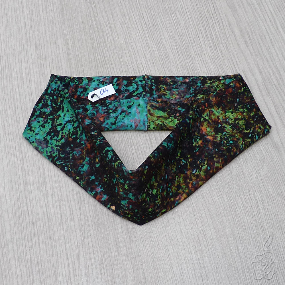 Designová čelenka z pružné látky s originálním potiskem představuje výrazný doplněk, se kterým vytvoříte rychlý účes.
