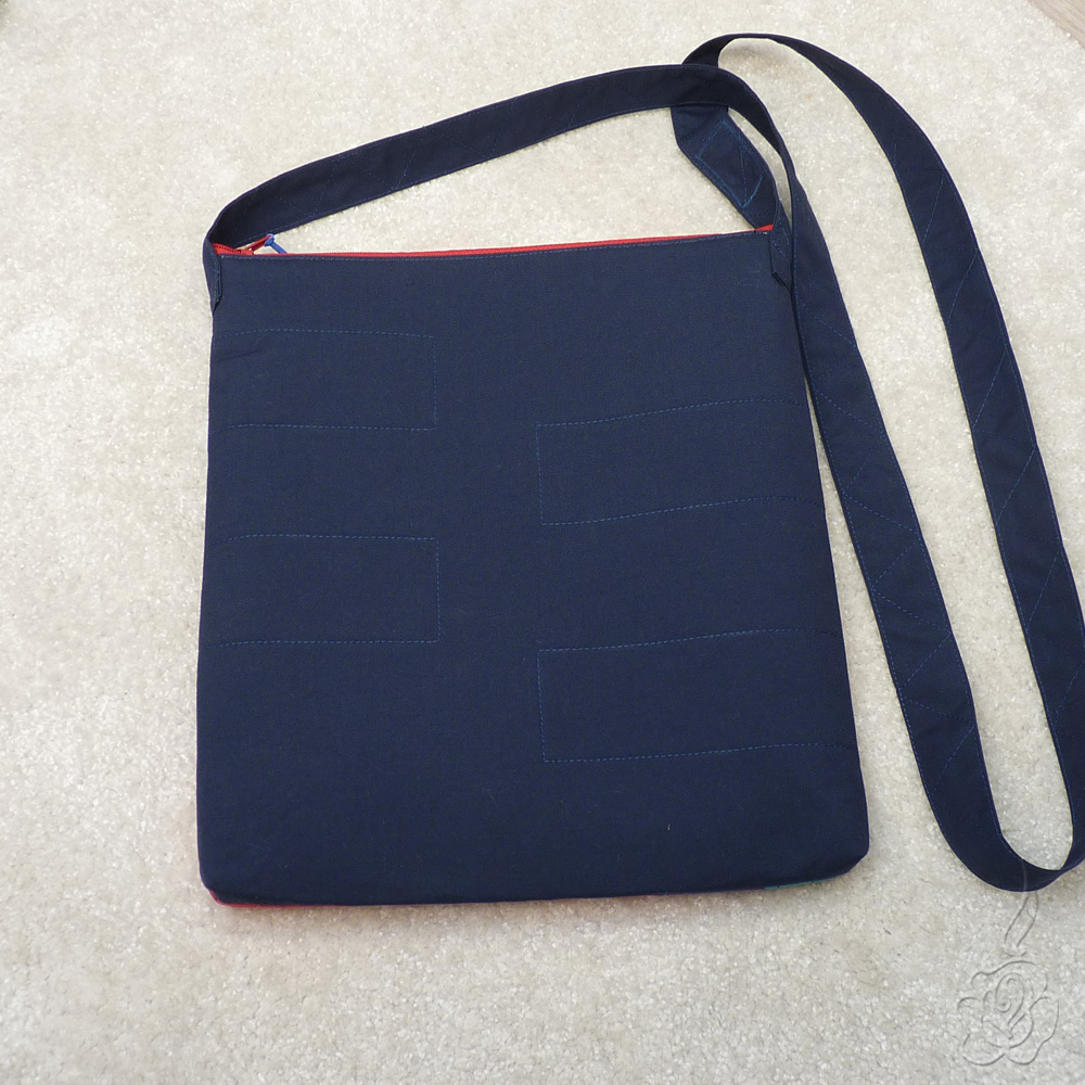 Zadní strana je z bavlny v tmavě modré barvě. Je prošívaná, stejně jako trak.