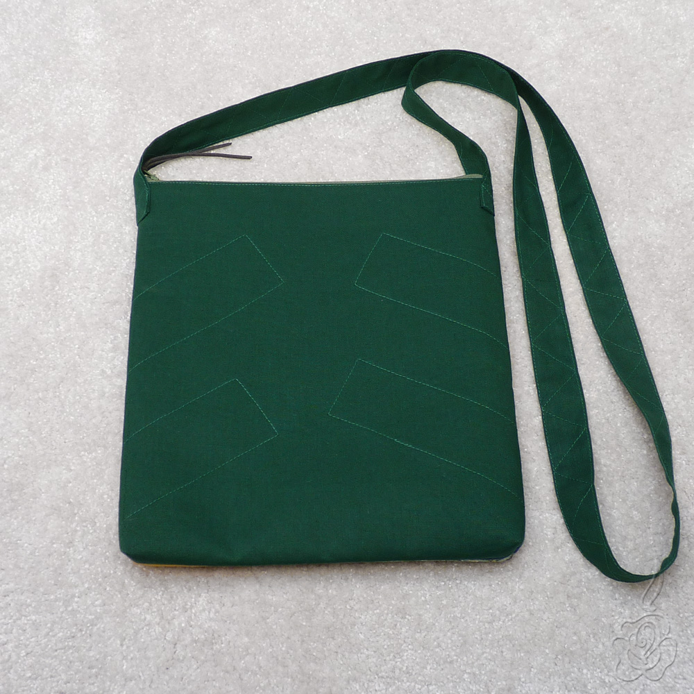 zadní strana a trak: 100% bavlna v tmavě zelené barvě