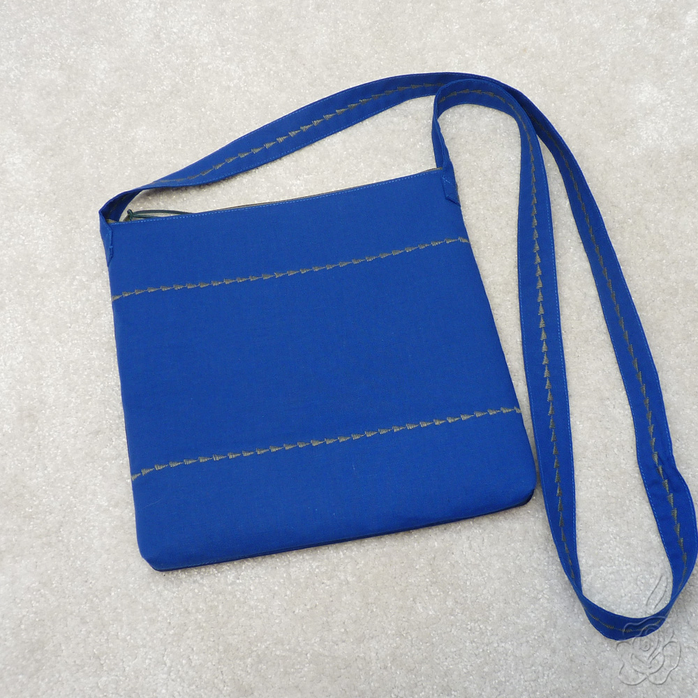 zadní strana a trak: 100% bavlna v sytě modré barvě