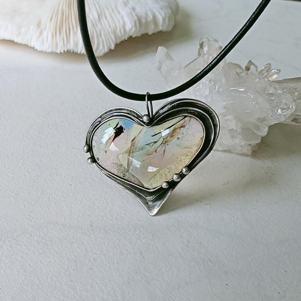 Autorský šperk vyroben tiffany technikou z bezolovnatého cínu se stříbrem, luxusního skla a drátu.