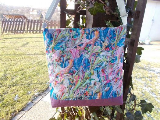 Zajímavá kabelka (crosby taška) je vyrobena z vodo-odpudivé prošívané kočárkoviny, přední díl je zdoben barevnou kočárkovinou.