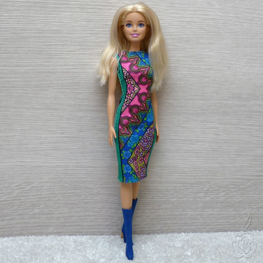 Úzké šatičky s barevným vzorem pro panenku Barbie.