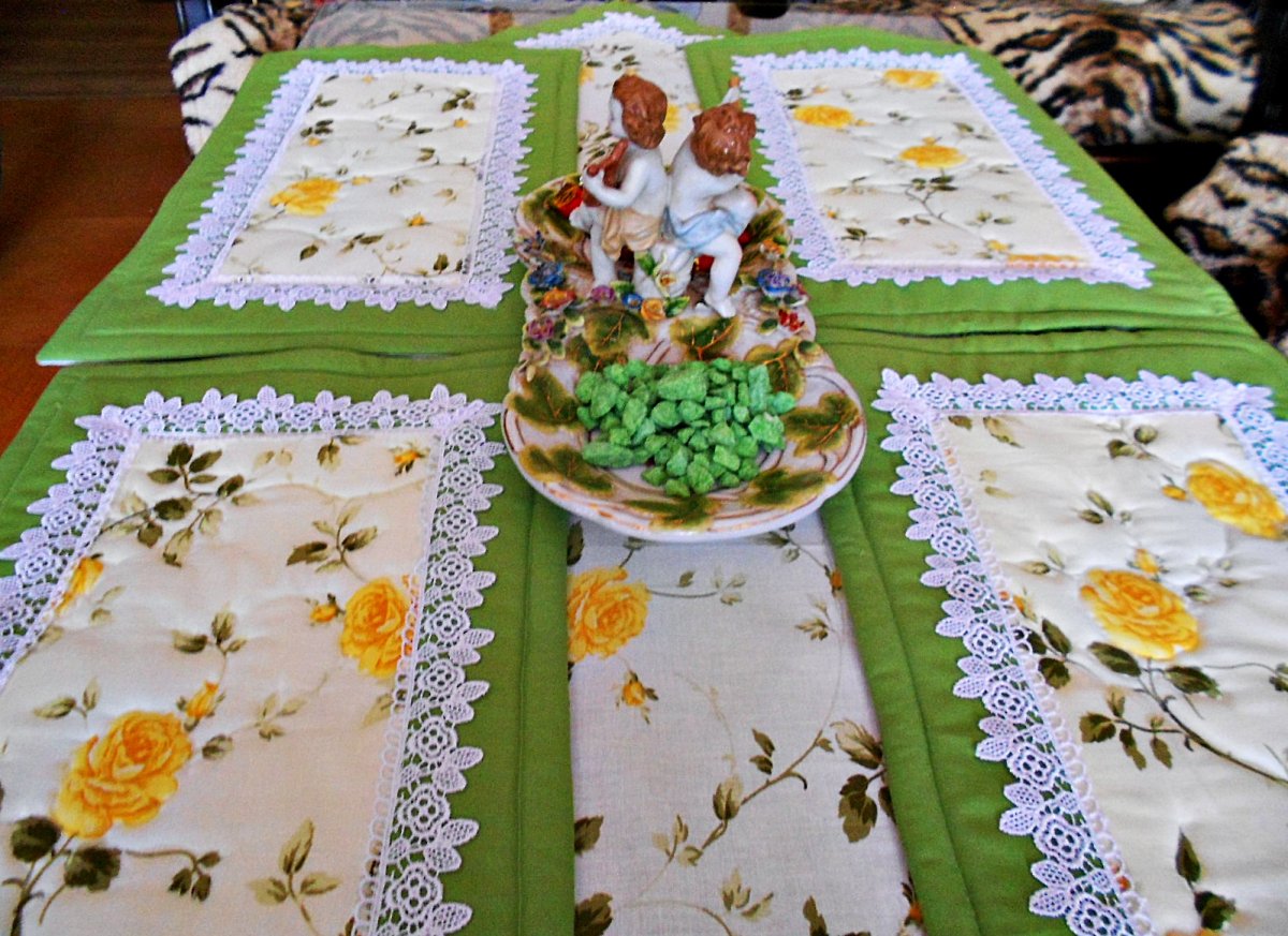 Cena za celou sadu, jeden běhoun a 4 kusy prostírání.