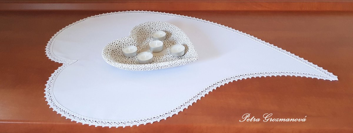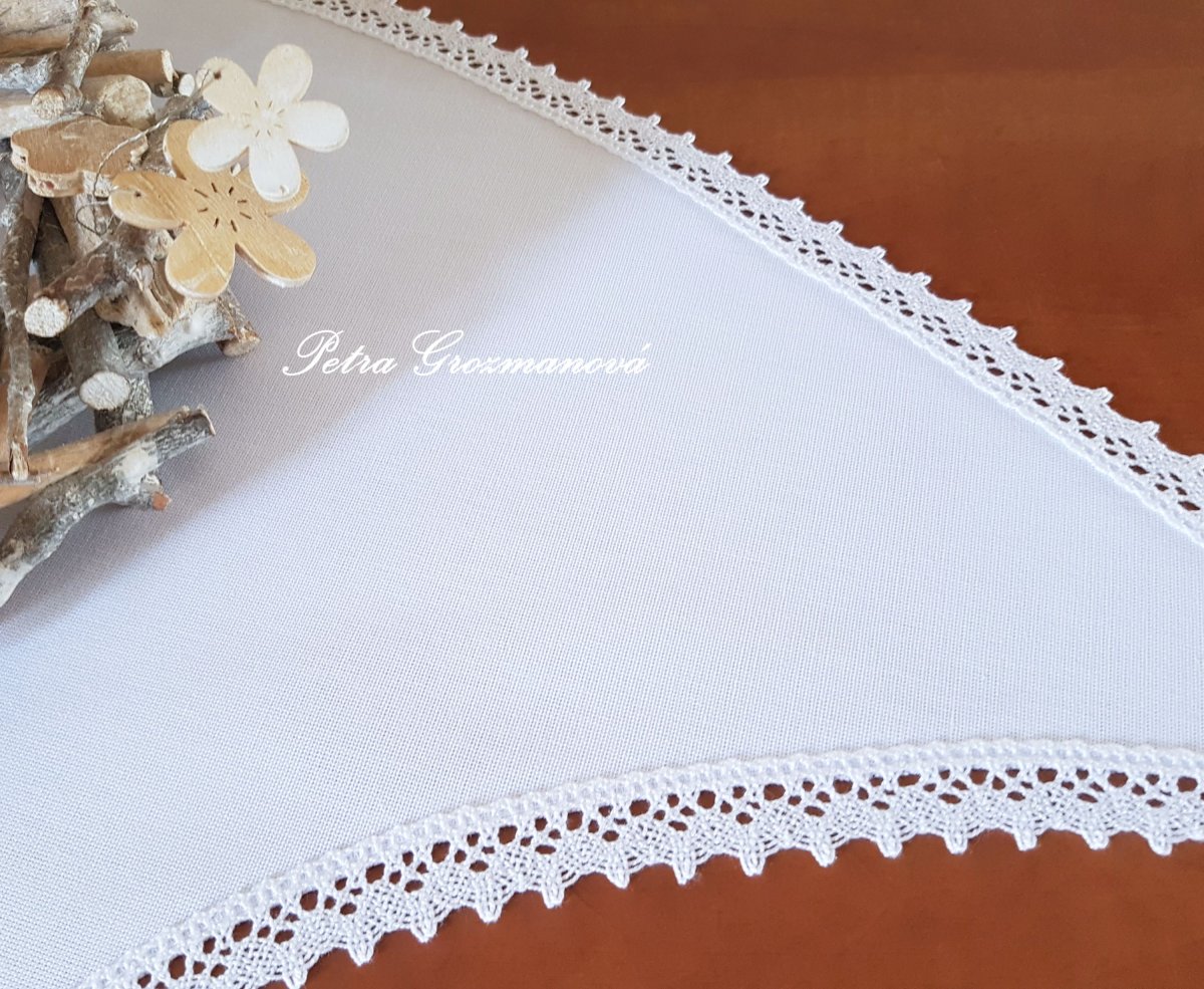 ... oboustranný dekorační běhoun,zesílený ze dvou látek v bílém provedení , lemovaný bílou krajkou ...