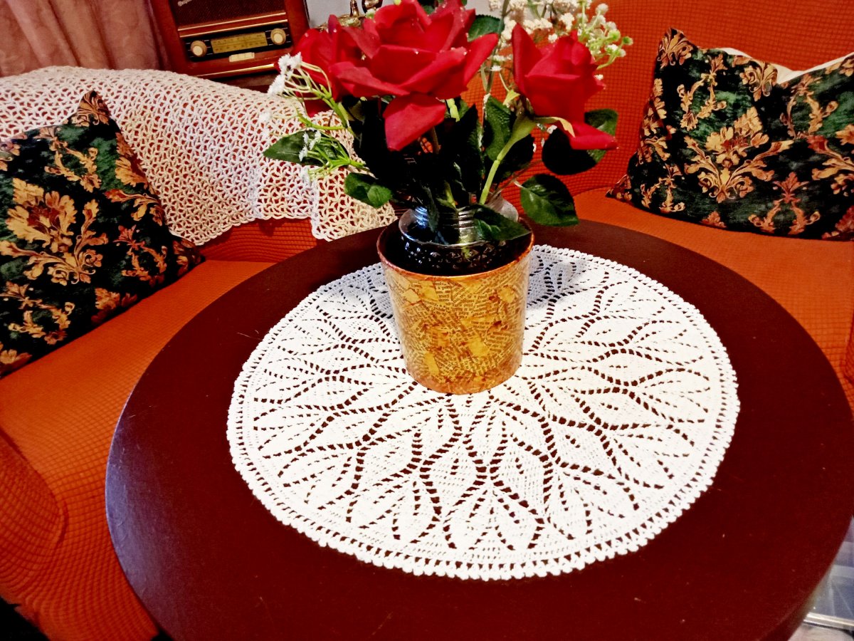 Bílá háčkovaná dečka na stůl, průměr 42cm.