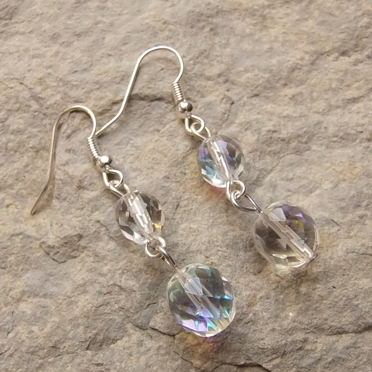 Náušnice jsou vyrobeny z českých broušených korálků s AB efektem a jsou 2 cm dlouhé bez afroháčku.
