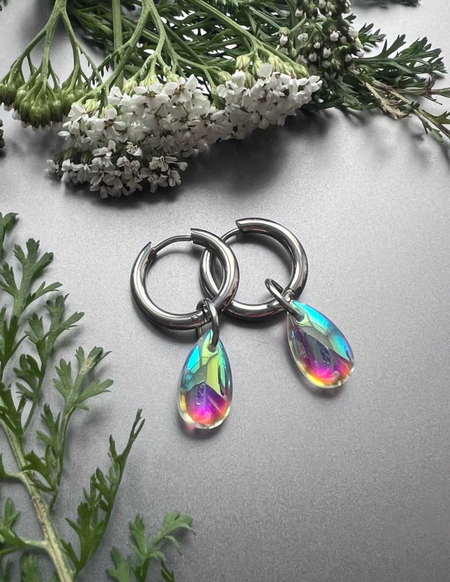 Volné přívěsky ke kruhovým náušnicím z mé nabídky (doplňkové foto) na výměnu - skleněné slzičky 8 x 14 mm na nerezovém kroužku - pár.