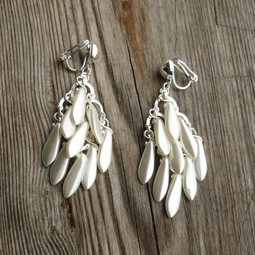 Náušnice jsou tvořeny z uspořádaných bílých voskovaných skleněných korálků do tvaru kosočtverce.