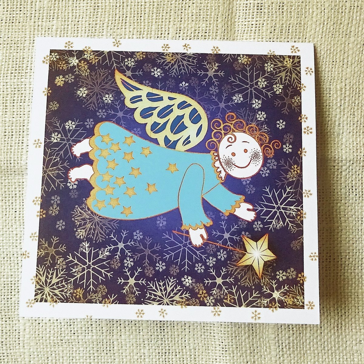 Vánoční přání s vlastním autorským motivem. Technika akvarelu s perokresbou. Na zadní straně ©Lenka Vojtová a krátká prosba k andělíčkovi.
