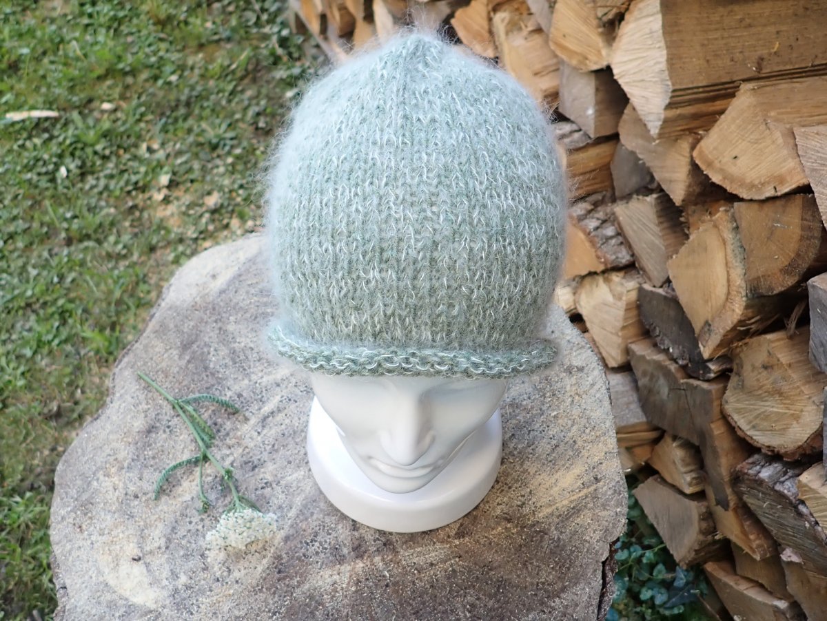 Nadýchaná jednoduchá čepice je díky použitému materiálu lehounká jako pírko, ale přesto teplá.
