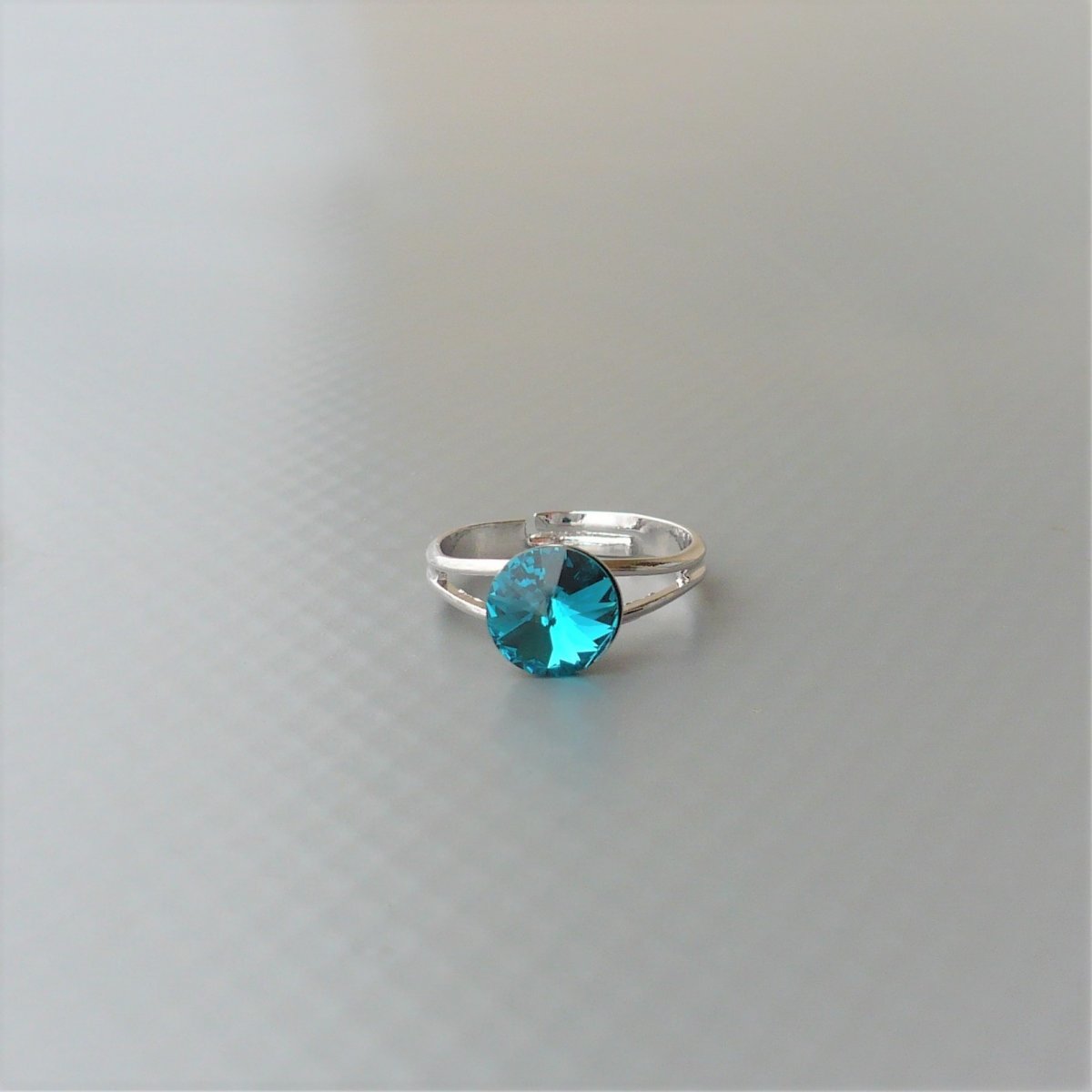 Krásně modrozelený Swarovski kamínek v odstínu blue zircon je usazený v antialergickém prstýnku.