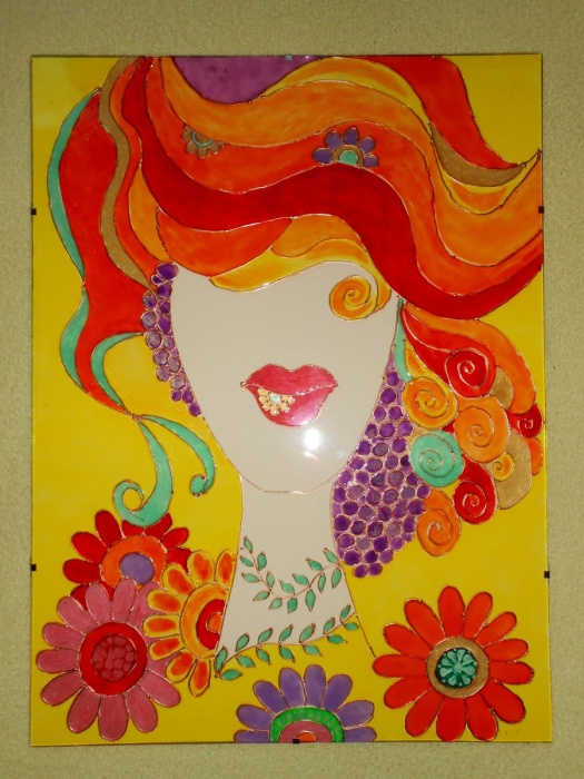 Ručně malovaný obraz na skle s přírodním motivem. Použité speciální kontury a vitrážové barvy na sklo. Na klips skle upravené k pověšení na zeď.