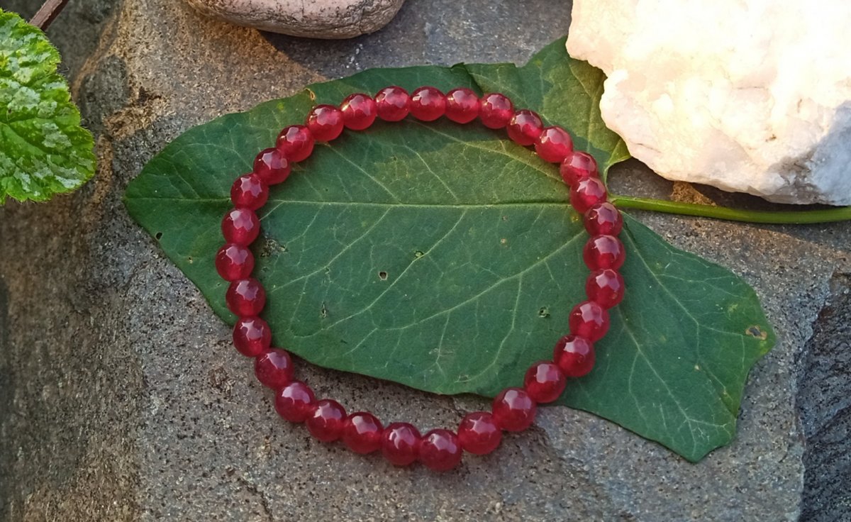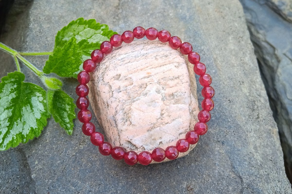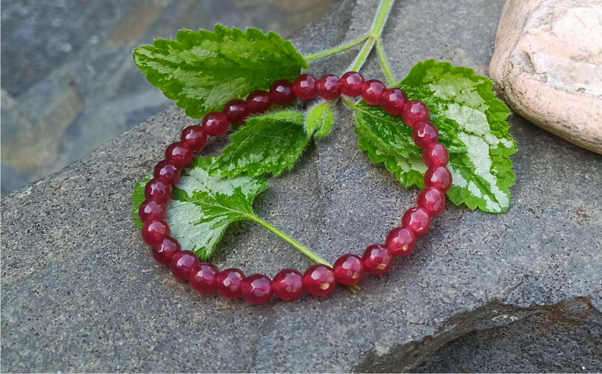 Něžný pružný náramek vyrobený z broušeného českého granátu o průměru 5 mm v nádherně temně červené barvě.