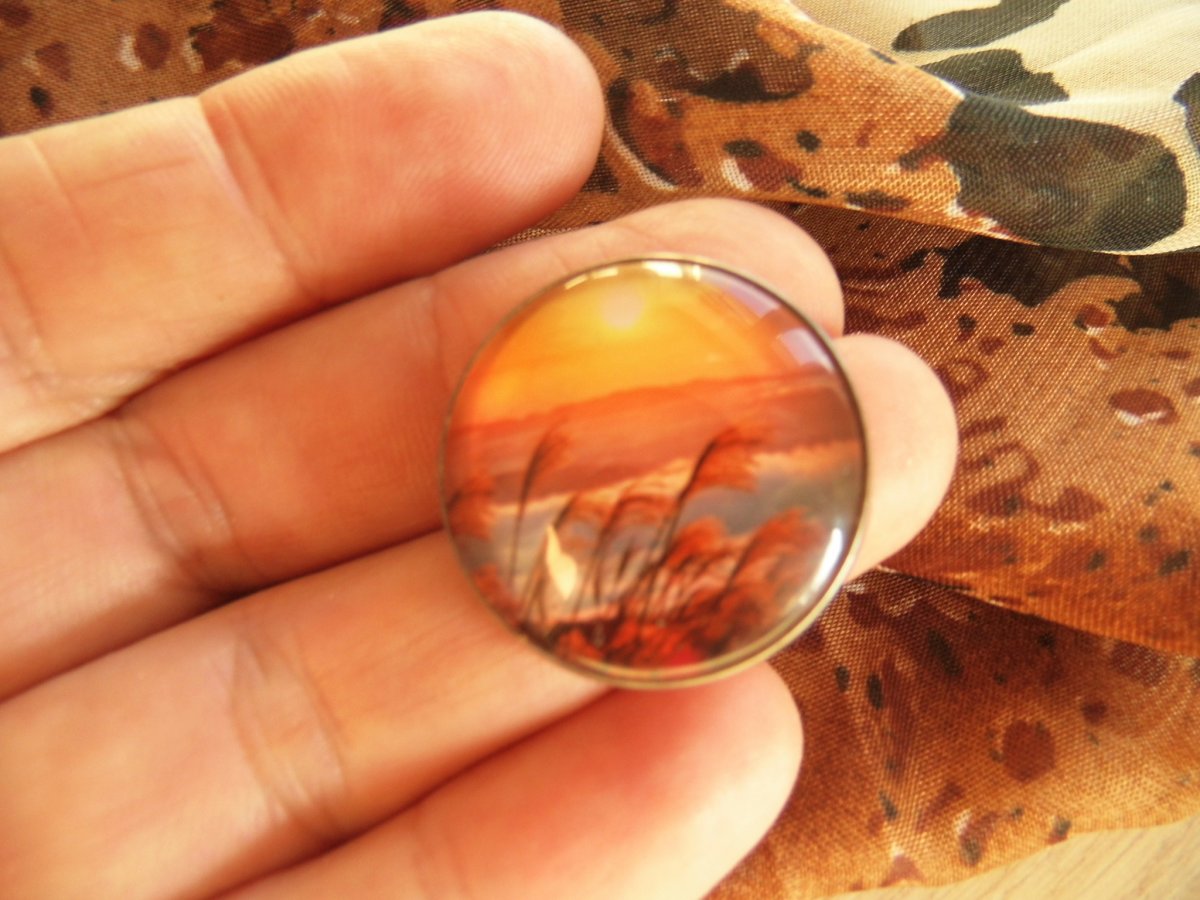 nerez kovové lůžko 25mm,skleněný kabošon, brož.jehla