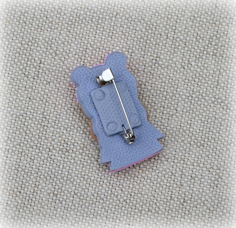 Brož ručně vyrobená z polymerové hmoty, na zadní straně kvalitní brožový můstek barva růžová, šedá, hnědovláska vel.3,7cm