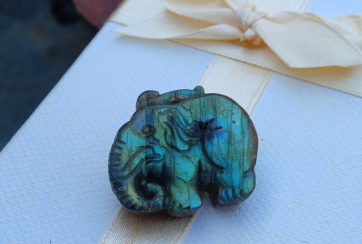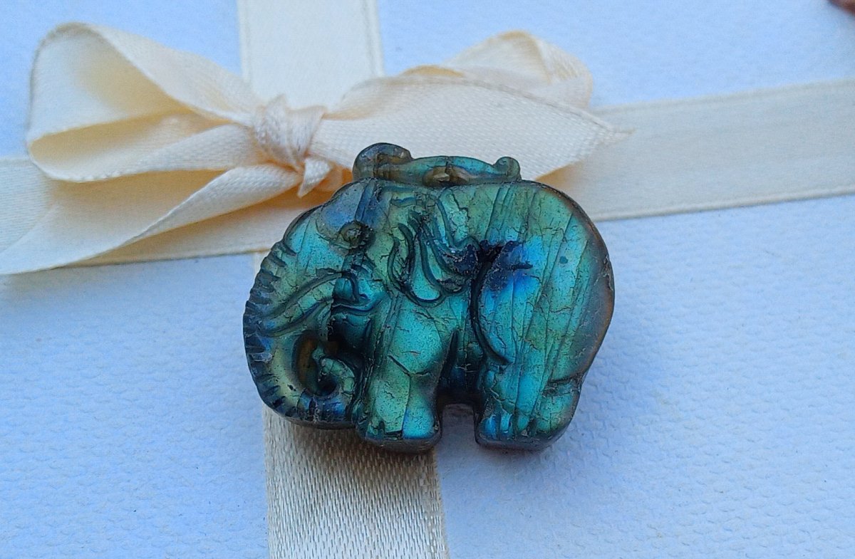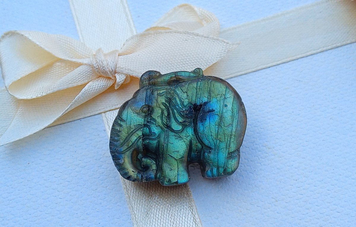 Ozdobte svůj oděv šperkem, který v sobě nese sílu přírody a hlubokou symboliku. Tato ručně vyřezávaná brož ve tvaru slona je vyrobena z labradoritu, fascinujícího minerálu, který je proslulý svou proměnlivou hrou barev. Každý pohyb na světle odhalí nové modré a zelené odlesky, díky čemuž je každý kus naprostým originálem.