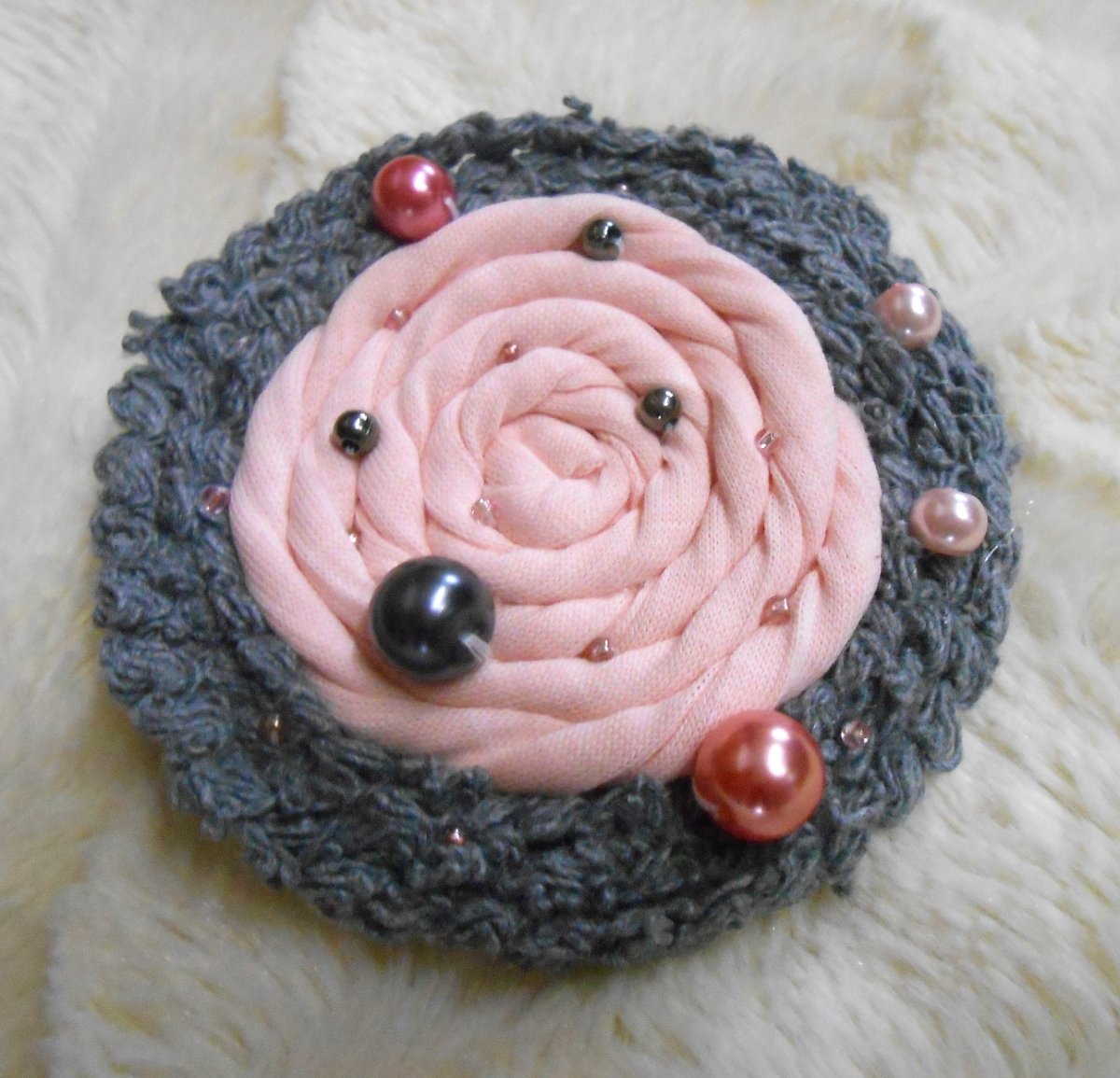 brož je textilní, pošita perlami a mini korálkami tón v tónu