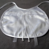 Bryndák pro družičku, vyrobený z kvalitního lesklého bílého saténu, zdobený krajkou, atlasovou stuhou a slavnostní mašlí. Mašle je vyrobená z šifonové stuhy a atlasové stužky, přizdobená srdíčkem a věnečky. Je opatřena malinkým zavíracím špendlíčkem.