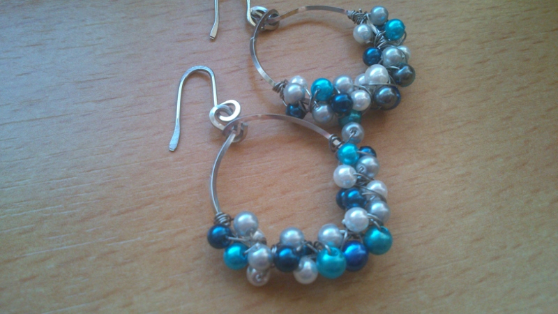 nausnice Z hranateho dratku ve tvaru kruhu zdobeny perlickami na pametovem dratku barva bila, cerna, stribrna dle vasi volby. Vyrobeno z nerezoveho dratku. Velikost privesku cca 4,5 cm. Ladi do sady s nahrdelnikemBUBLE WIRE 5.