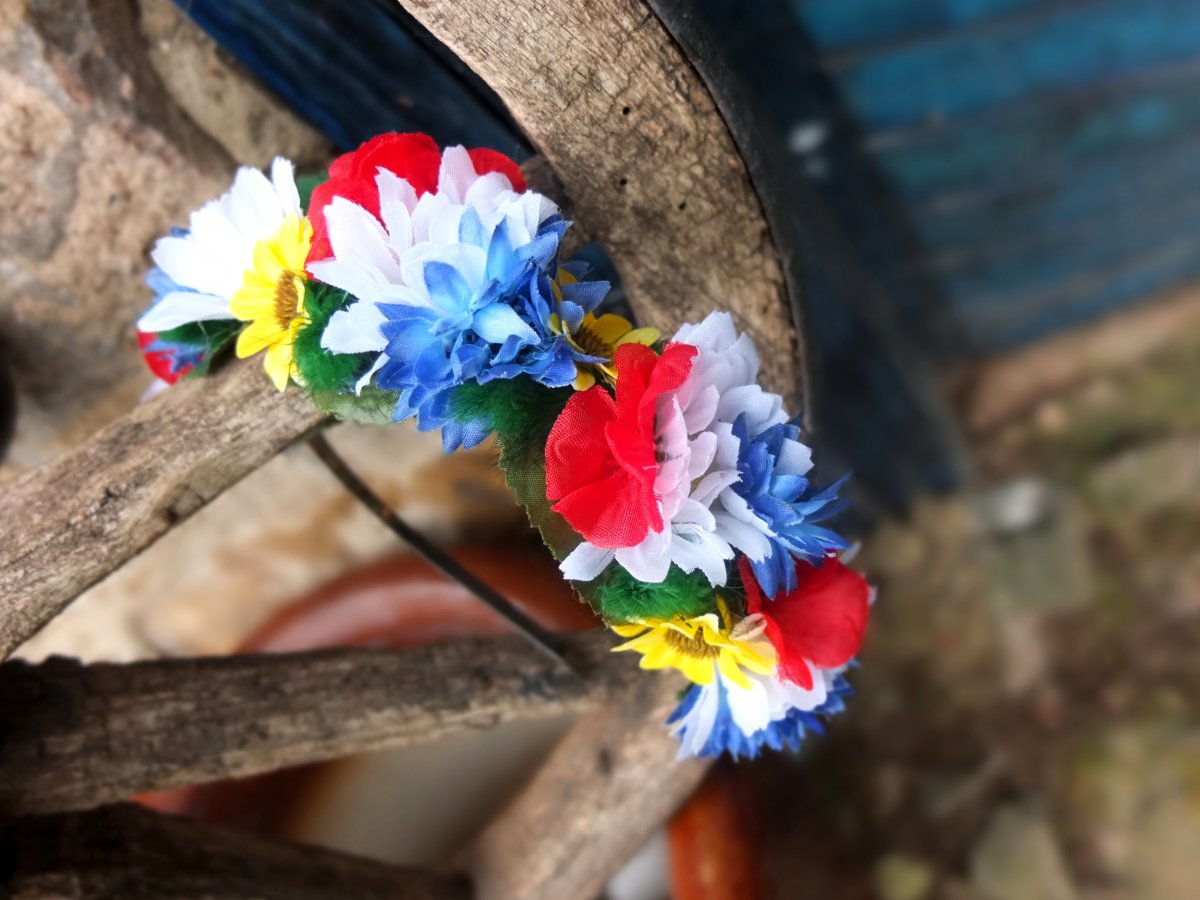 Barevná, veselá čelenka do vlasů z květinek, lístečků a bobulek, kterou si můžete vzít kdykoli, kdy se budete chtít cítit jako víla. Především pak v radostných až rozjařených náladách, kdy se vám chce tančit a poskočit při každém kroku! Fantazii se meze nekladou!