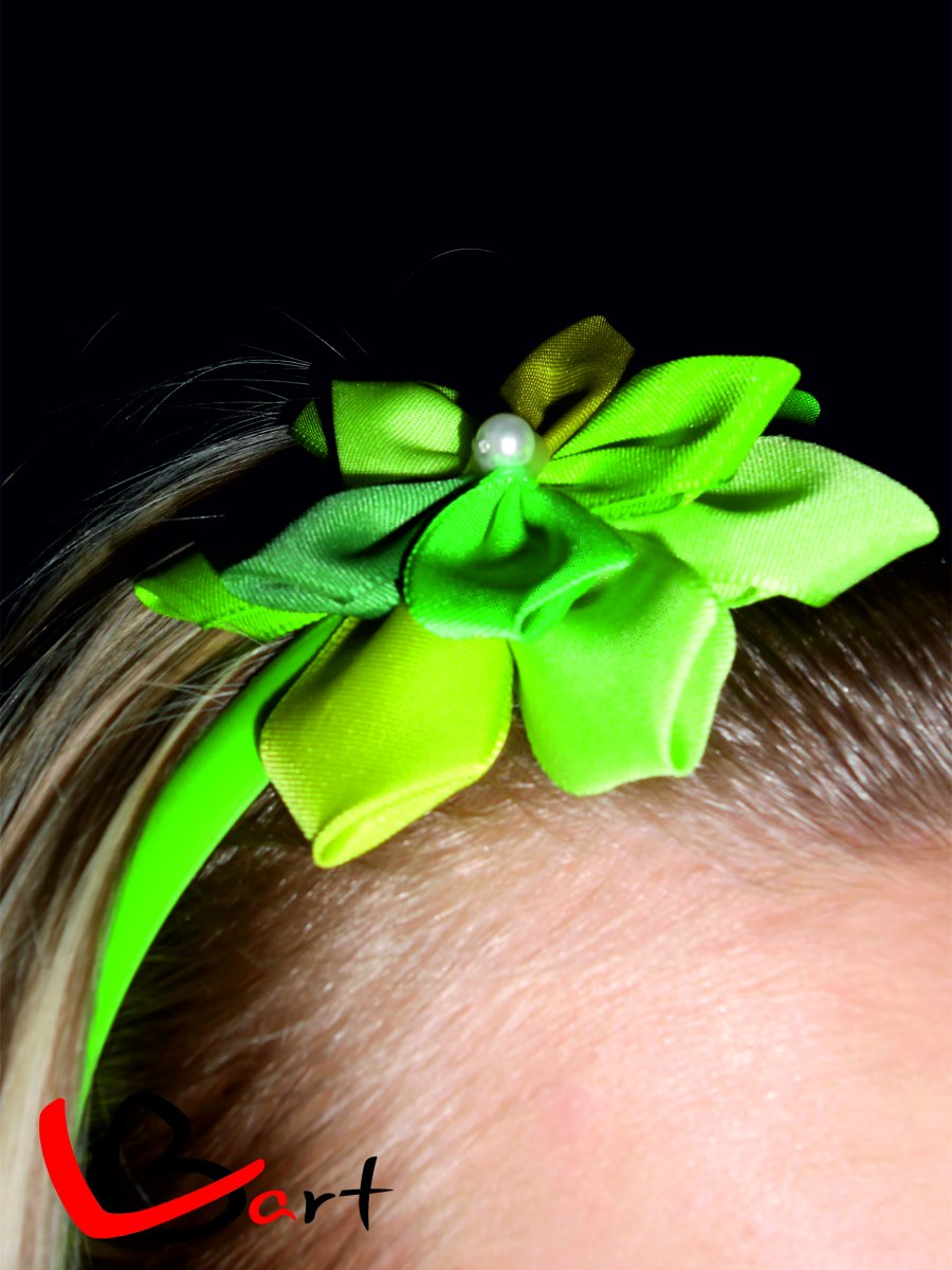 Materiál - plastová čelenka, ručně ušitá kytička ze stužek