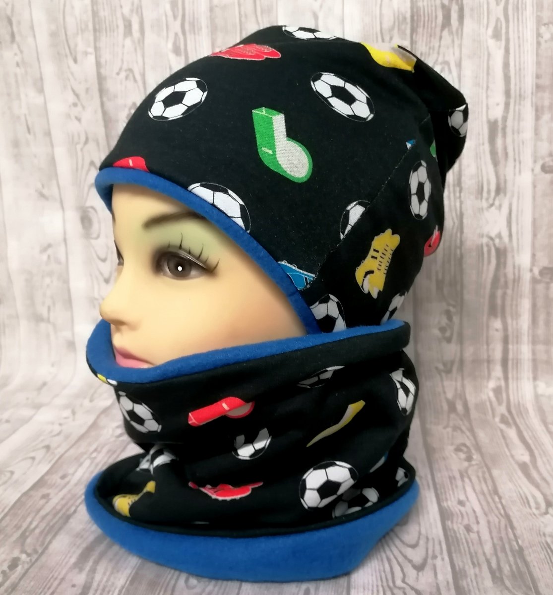 čepice a nákrčník - oboustranná, nosíte vzor nebo otočíte na jednobarevnou