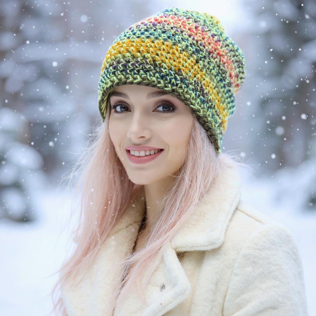 Háčkovaná dámská i dívčí čepice z akrylových přízíPro obvod hlavinky od 52 cm do 58 cm