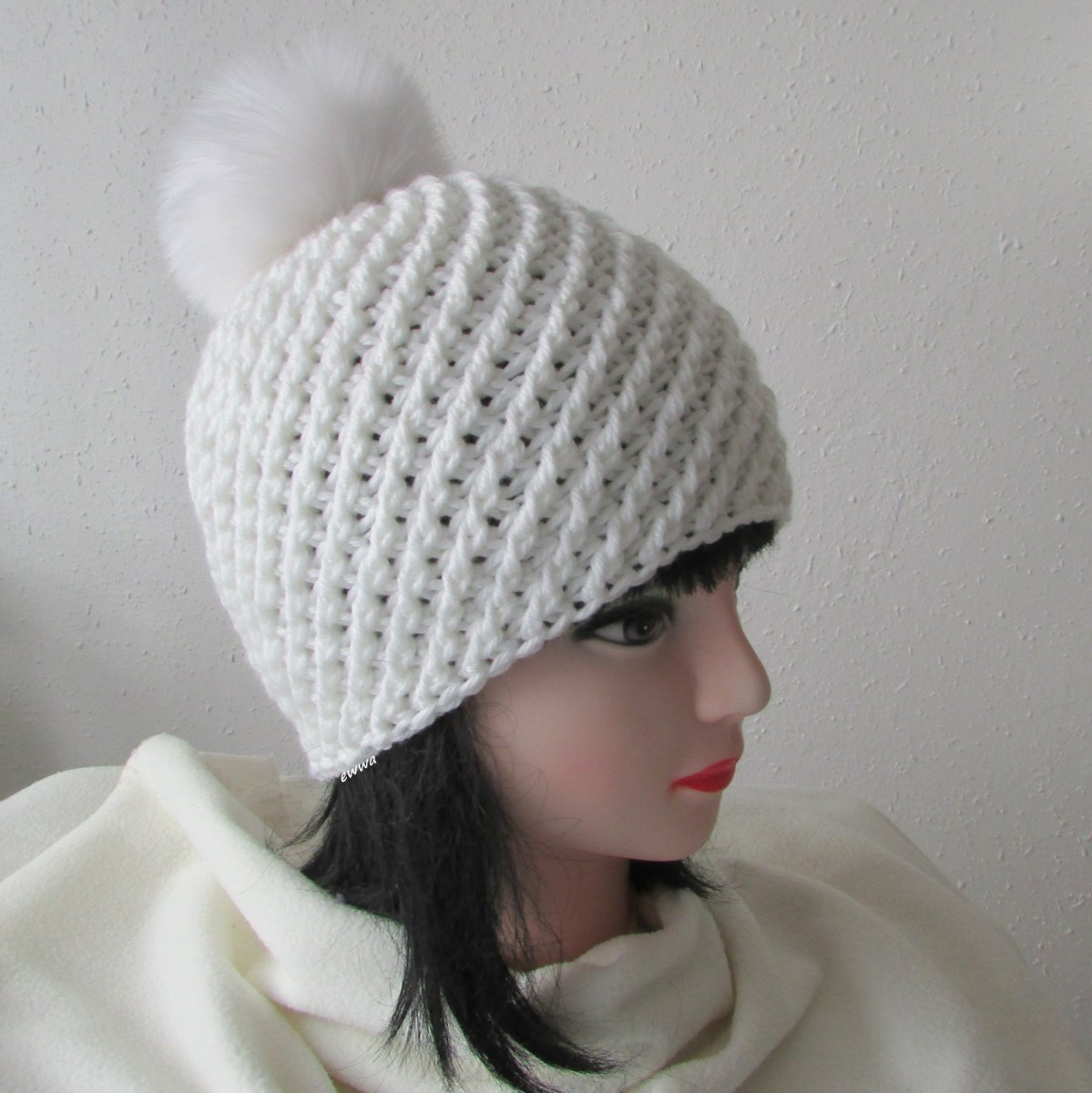 Háčkovaná zimní, teplá čepice, kulich, s bambulí (lze lehce odvázat),