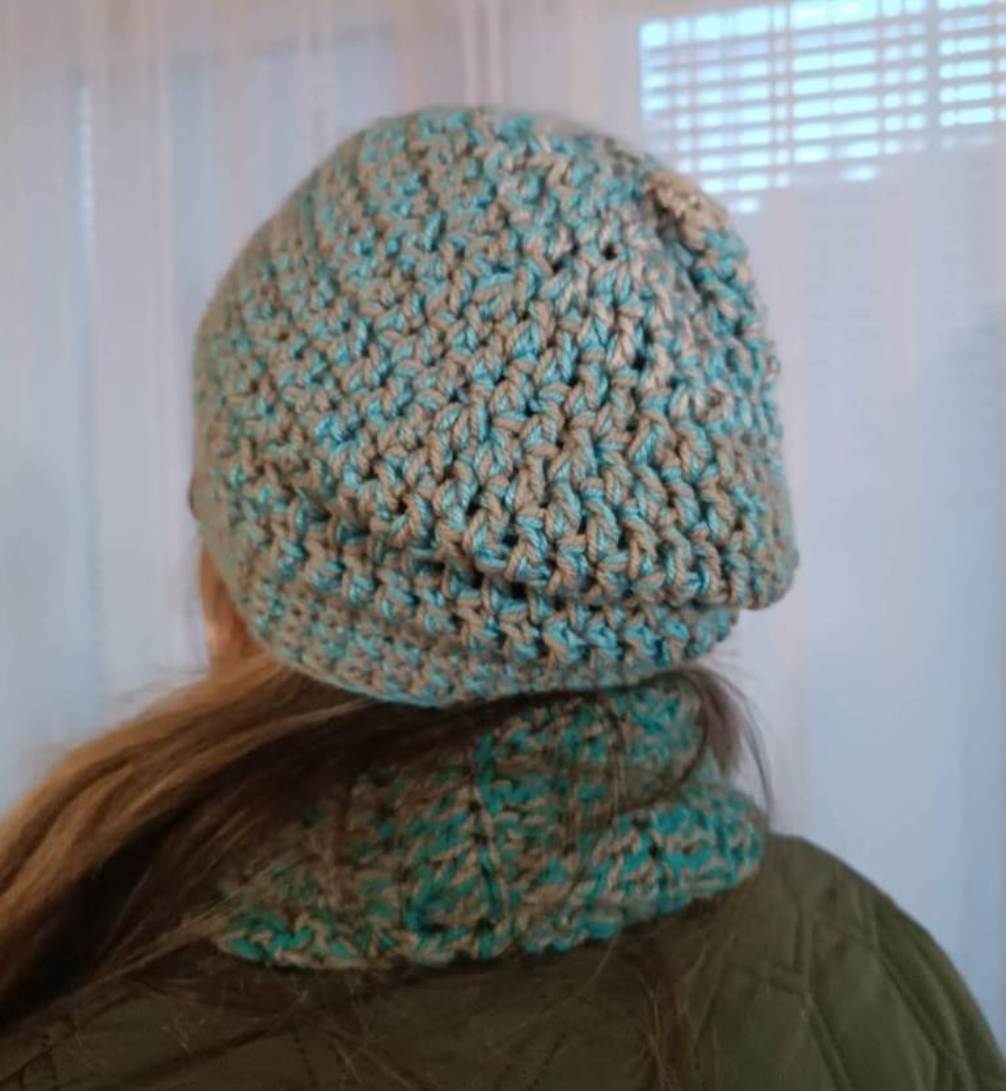 Zimní set v krásných barvách mentolu a béžové. Set je uháčkovaný z různých materiálu, které k sobě krásně ladí. Nemám ráda zbytečné plýtvání materiálem a tak na takovéto věcičky spotřebovávám vždy různé zbytky klubíček, které se mi nastřádají.