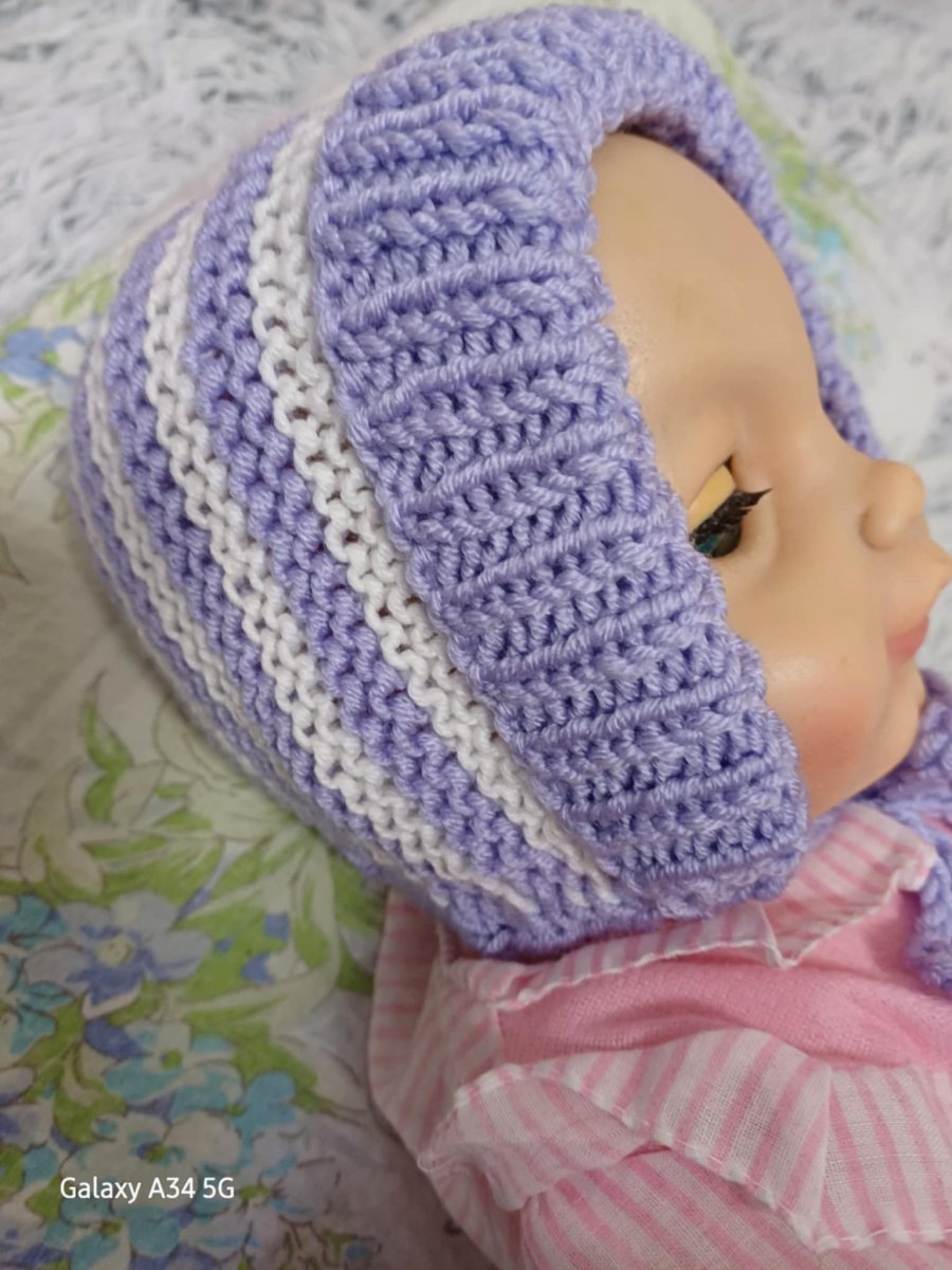 Velikost 0-3 měsíců. Čepička má dvojitý ohrnutý lem.