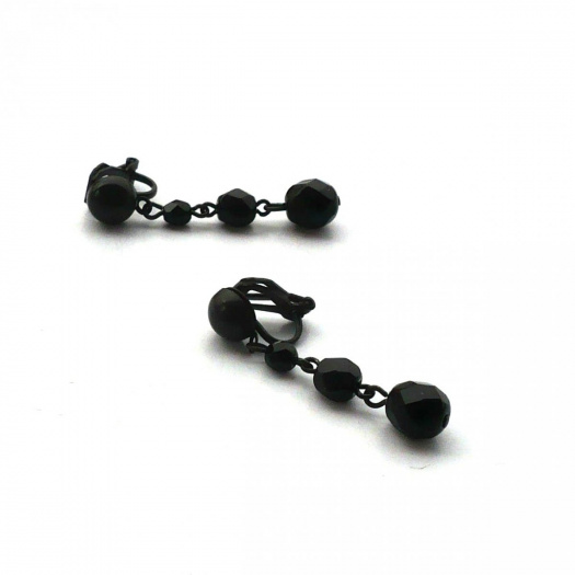 Černé broušené skleněné korálky jsou zavěšeny na klipsovém zapínání - na toto zapínání není potřeba mít propíchnutá ouška. V případě zájmu přendám na zapínání pro propíchnutá ouška.