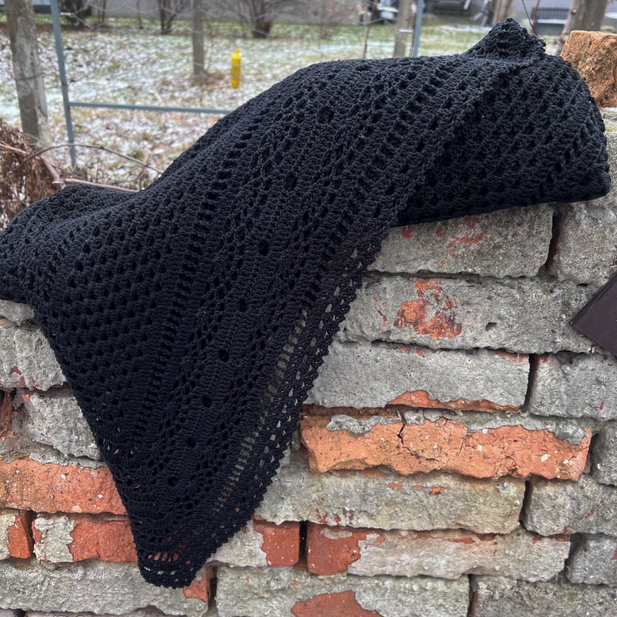 Maxi háčkovaný šátek - pléd z černé bavlněné příze.