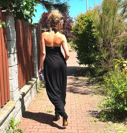 Pohodlný overal z úpletu viskóza/elastan s bočními kapsami. Overal má volná záda se zavazováním za krkem. Na prsou je podšívkovaný. Možné je podvléci trikem nebo nosit na holé tělo.