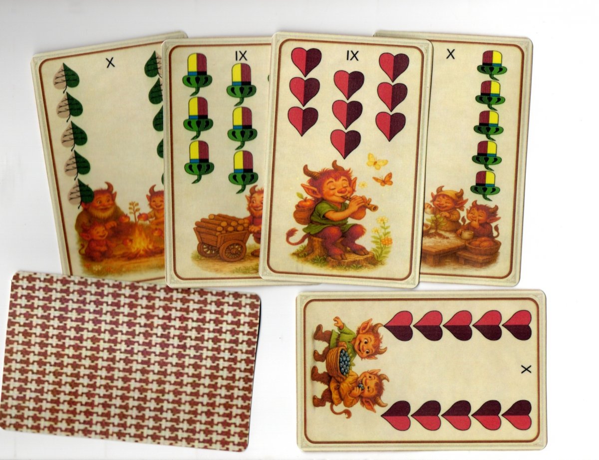 Čertovské mariášové pekelné karty tisk na papír 250g. vel 11 4x7,4 cm , 32 karet ruční práce