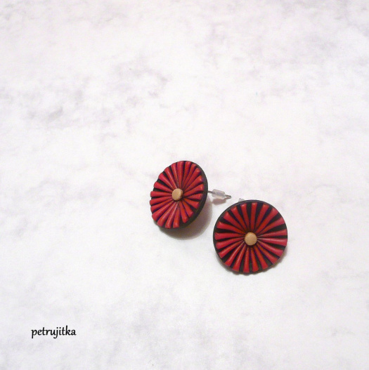 Originální náušnice (pecky) z polymerové hmoty. Barva je červená
