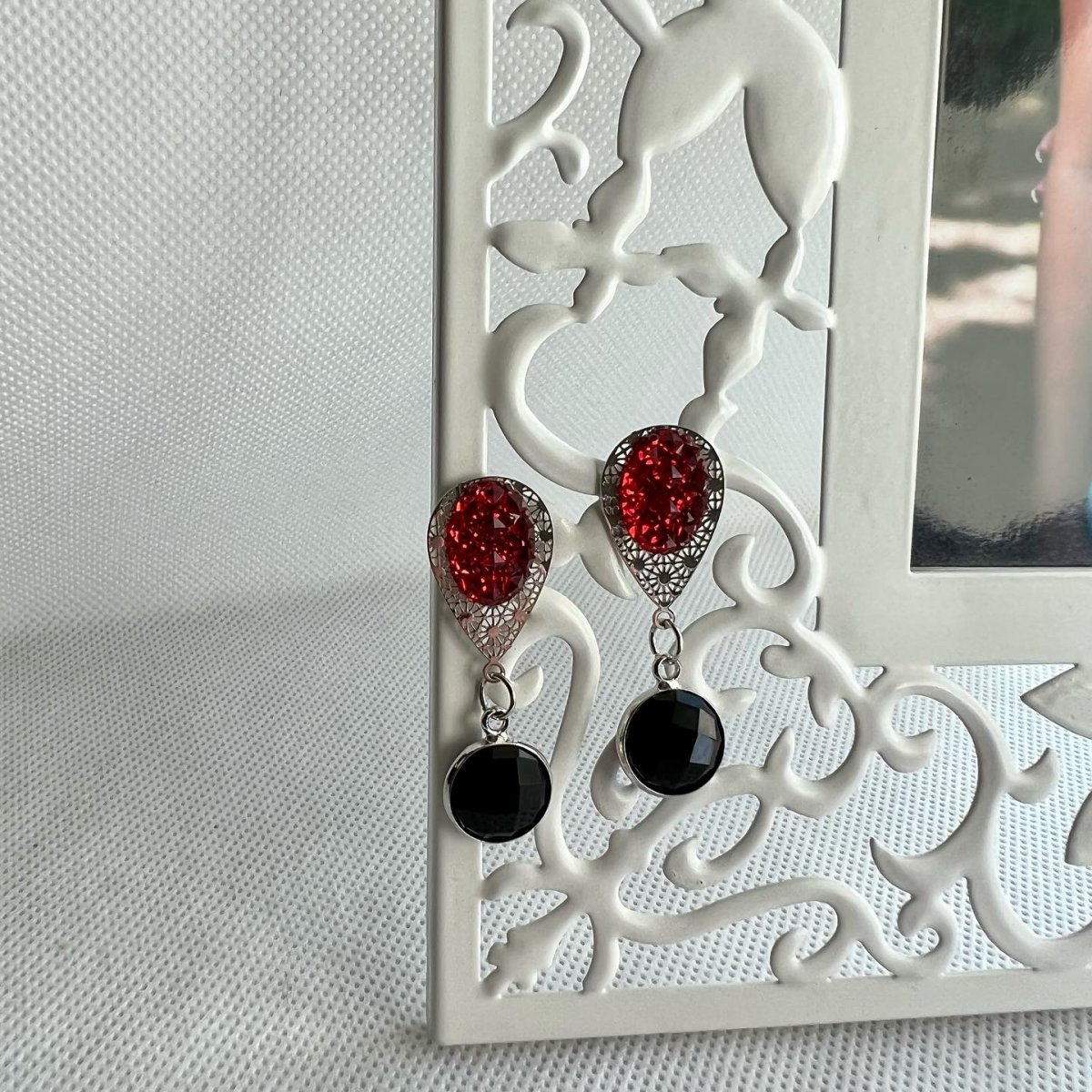 Krásné červeno černé náušnice vhodné k jakékoliv příležitosti. Zapínání je tzv. napichovací/puzeta/pecka.