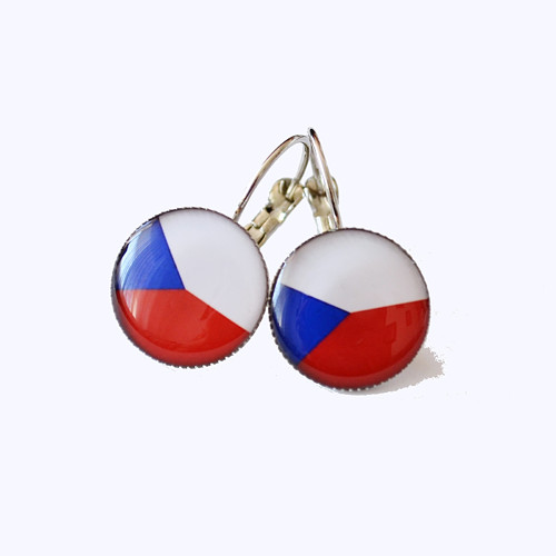 Motiv s českou vlajkou je usazen v bižuterním lůžku a zalitý křišťálovou pryskyřicí.