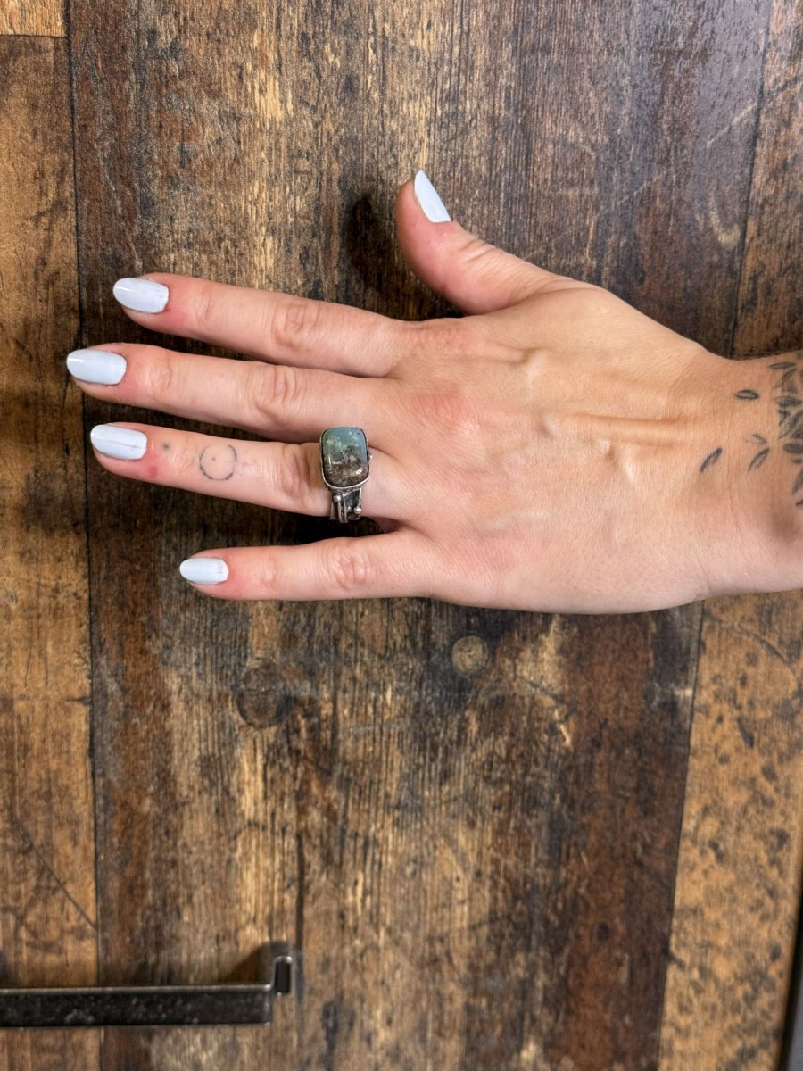 Prstýnek s kamenem CHRYZOPRAS. Je decentní a zároveň velmi osobitý.