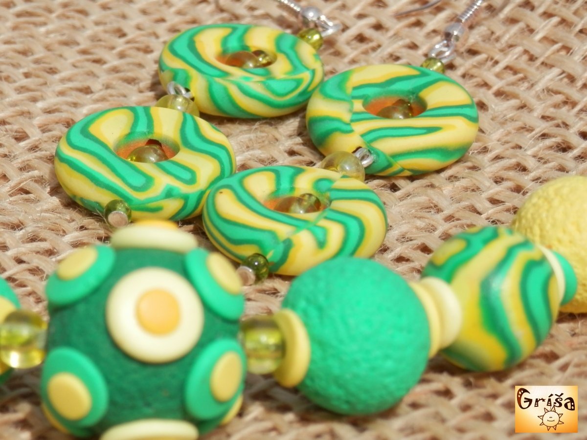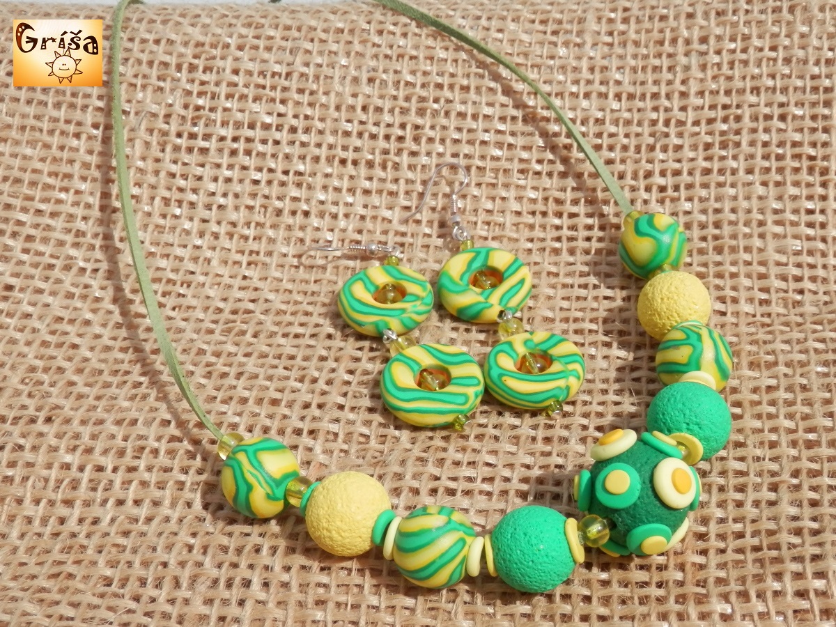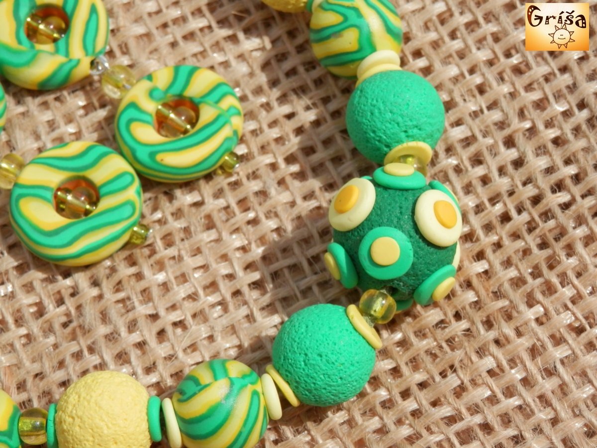 Korálkový náhrdelníček je složen z devíti polymerových korálků, největší má průměr 20 mm.