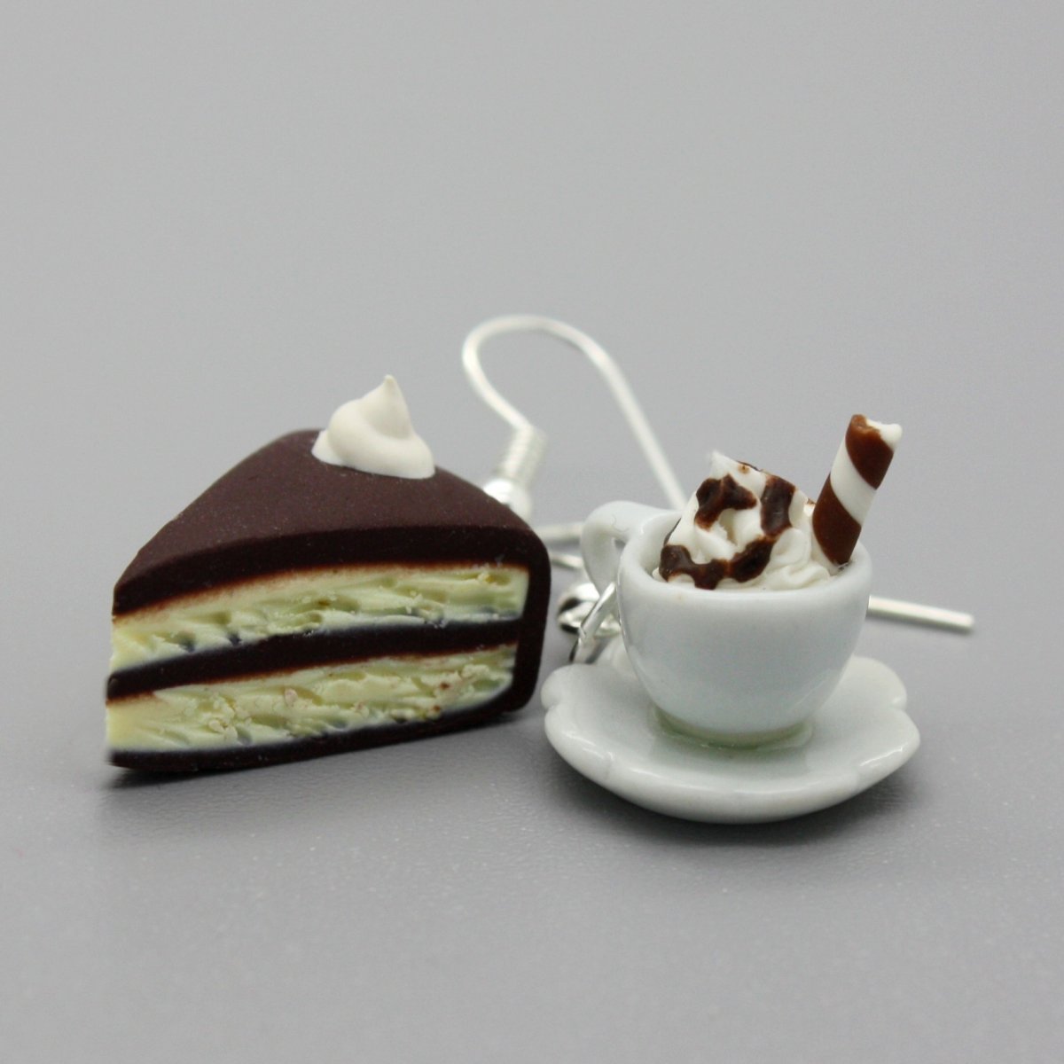 modelované z polymerové hmoty , nádobí je porcelánové, náušničky jsou lehké zavěšeno na stříbrných bižuterních afroháčcích,