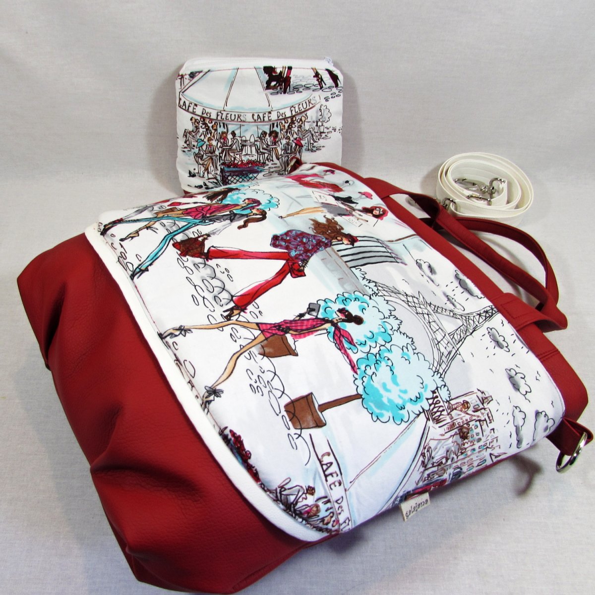 z bavlněné látky s motivem dívek na přehlídce a červené koženky