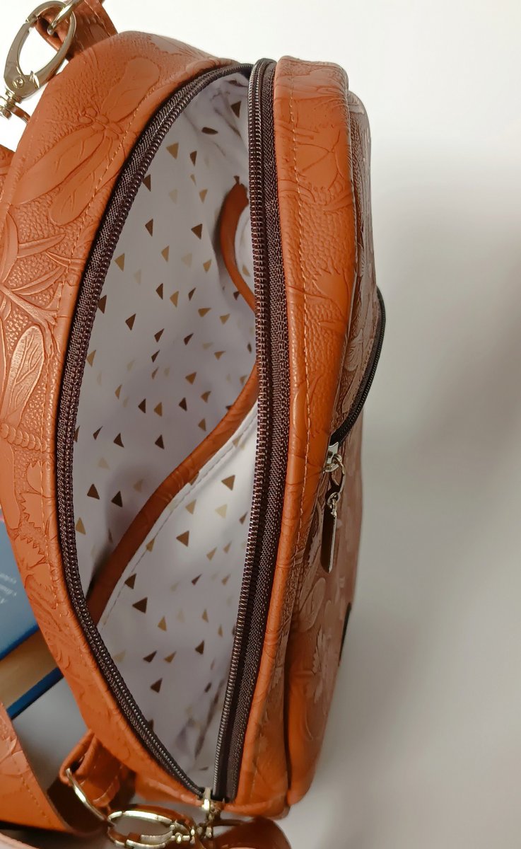 Kabelka je vyztužená pěnou. Uvnitř bavlněná podšívka s našitou kapsou.